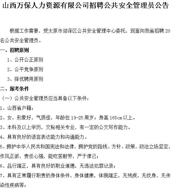 根據(jù)工作需要,經(jīng)古交市政府批準(zhǔn),現(xiàn)面向古交市公開招聘輔助工作人員30名。招聘工作由山西萬保人力...